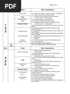 Yearly Scheme Of Work English Year 5 1 Question English Language