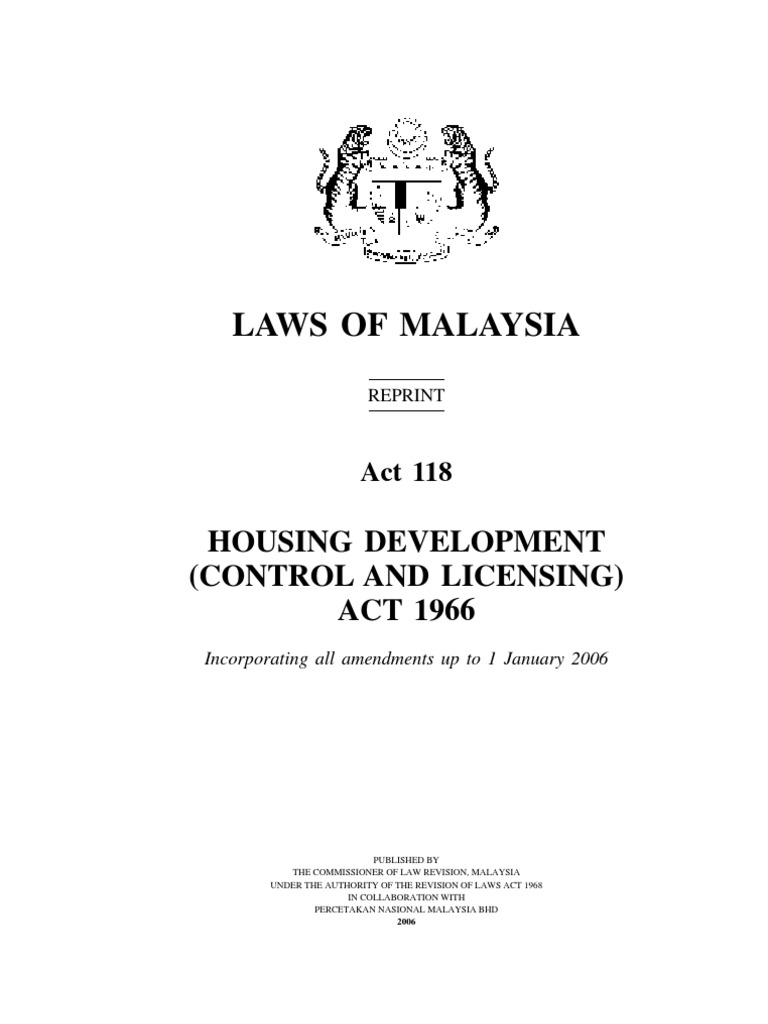 Laws of malaysia for housing development jmb management corporation. 29 august 1969 p art i preliminary short title and application 1. Housing developers control and licensing amendment act 2007.