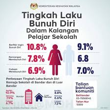 Isu bunuh diri di malaysia. Lantas dia nekad untuk bunuh diri. Kementerian kesihatan malaysia kkm merekodkan 465 kes cubaan bunuh diri yang dilaporkan dan menerima rawatan di hospitalnya sejak januari hingga jun tahun ini. Antaranya disebabkan oleh mangsa atau seseorang itu tak dapat berfikir dengan waras mahupun matang pada saat dan ketika itu.
