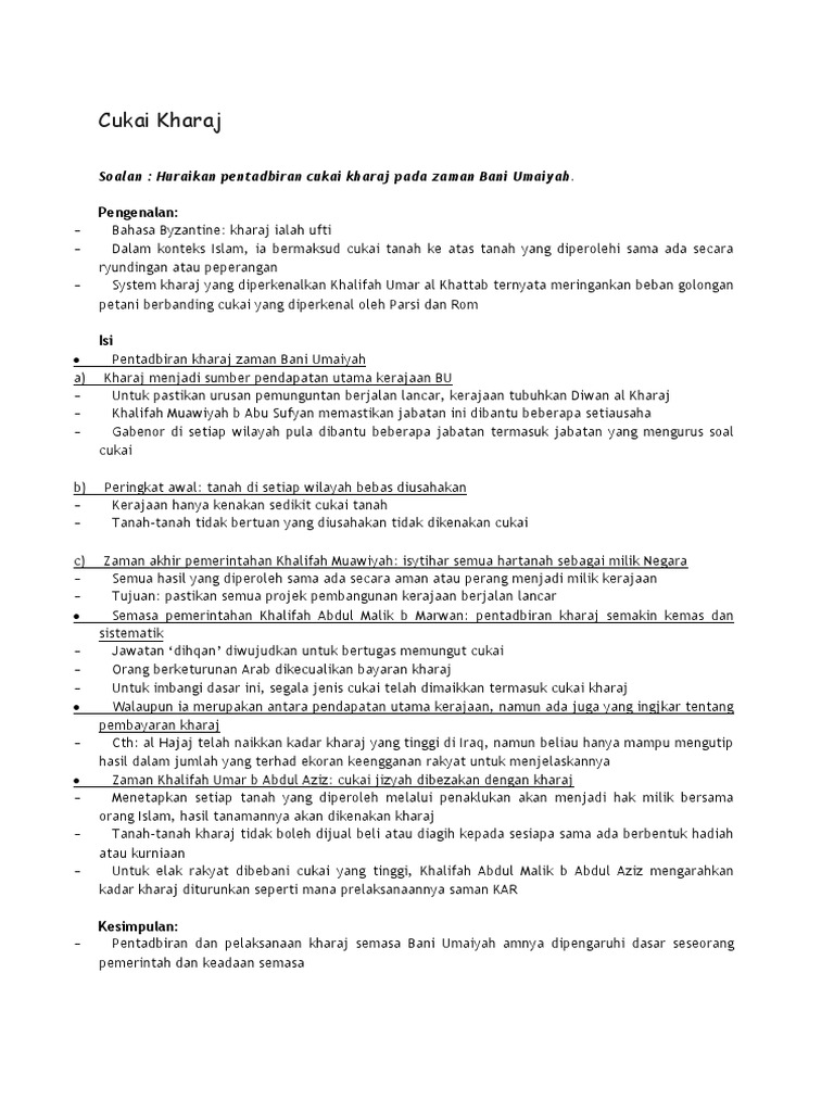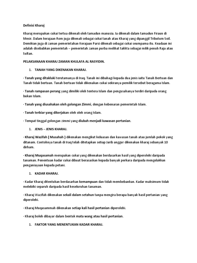 Huraikan Perlaksanaan Kharaj Pada Zaman Khulafa Al Rasyidin