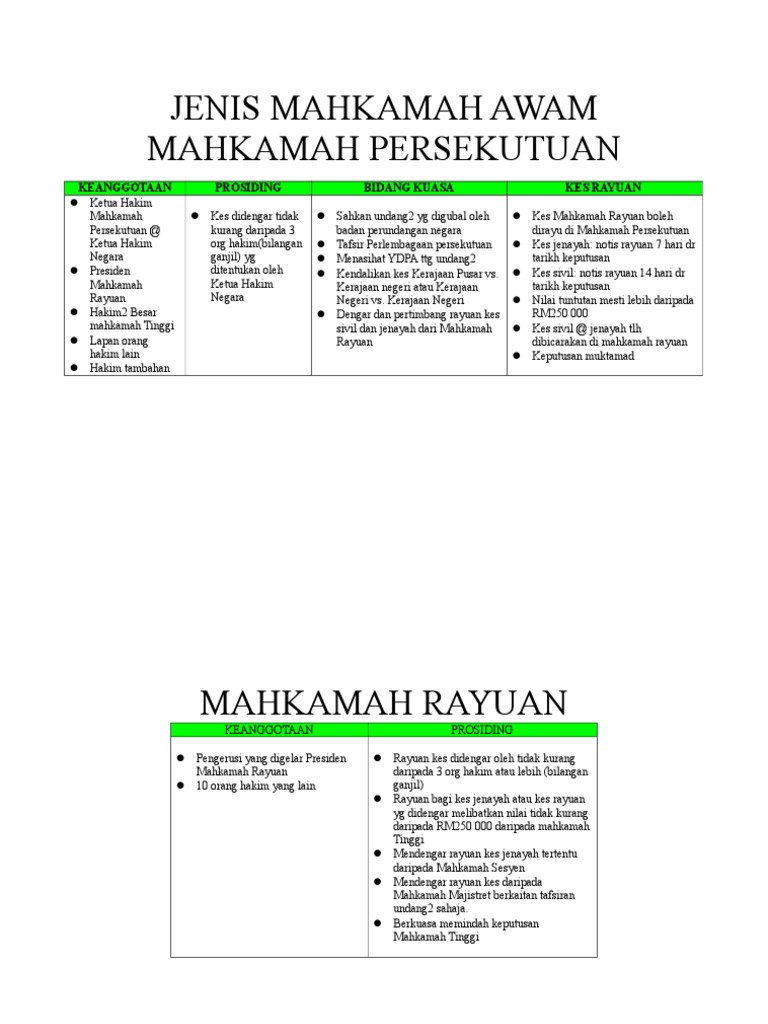 Jenis Mahkamah Awam Mahkamah Persekutuan Keanggotaan Prosiding Bidang Kuasa Kes Rayuan
