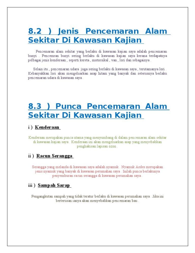 Doc Laporan Kajian Pencemaran Alam Sekitar Di Kawasan Perumahan Mizs Sakinah Academia Edu