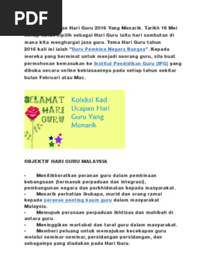 Memandangkan setiap seorang ada beberapa orang guru yang hendak diberi kad ucapan hari guru jadi kalau nak beli memang a bit costly. Mungkin saat ini kita belum bisa membalas semua jasa guru guru kita hanya kata kata ucapan selamat hari guru yang saat ini bisa kita berikan. Kad ucapan selamat hari guru 2016 dari jabatan pendidikan negeri johor pada 6 5 2016 jumlah.