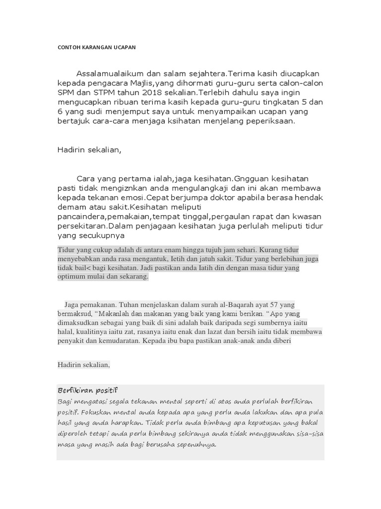 Contoh Karangan Ucapan Docx