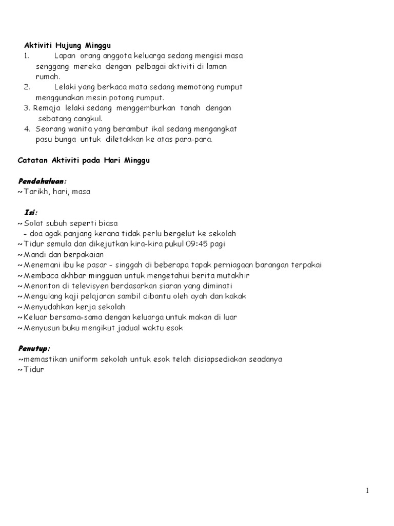 Sjkc Isi Karangan Untuk Murid Galus Penulisan Aktiviti Hujung Minggu