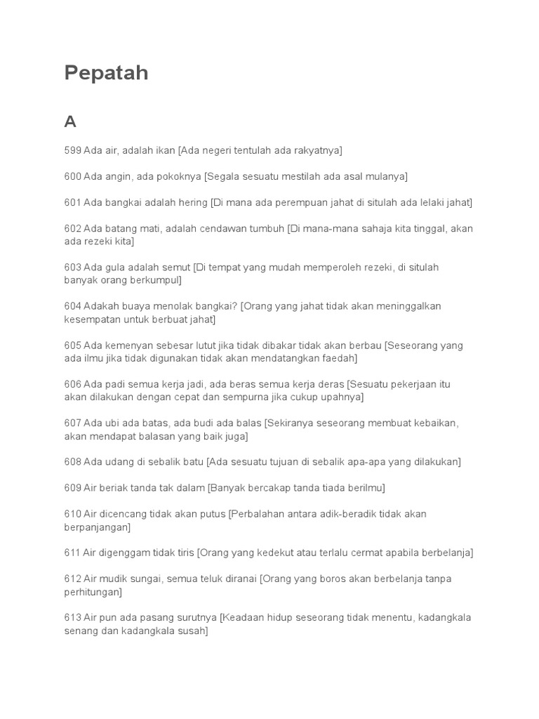 Hb Peribahasa Docx Peribahasa A 599 Ada Air Adalah Ikan Ada Negeri Tentulah Ada Rakyatnya 600 Ada Angin Ada Pokoknya Segala Sesuatu Mestilah Ada Asal Course Hero