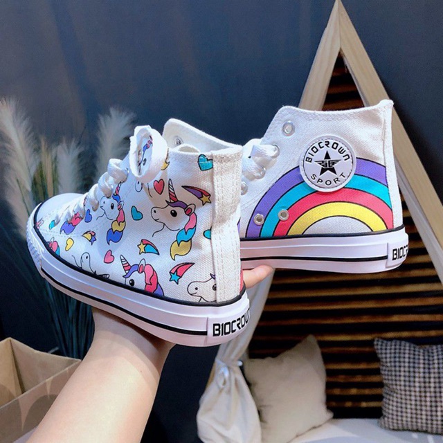 Harajuku Girl Kasut Kain Pasang Kasut Perempuan Unicorn Cartoon High Top Canvas Shoes Shopee Malaysia