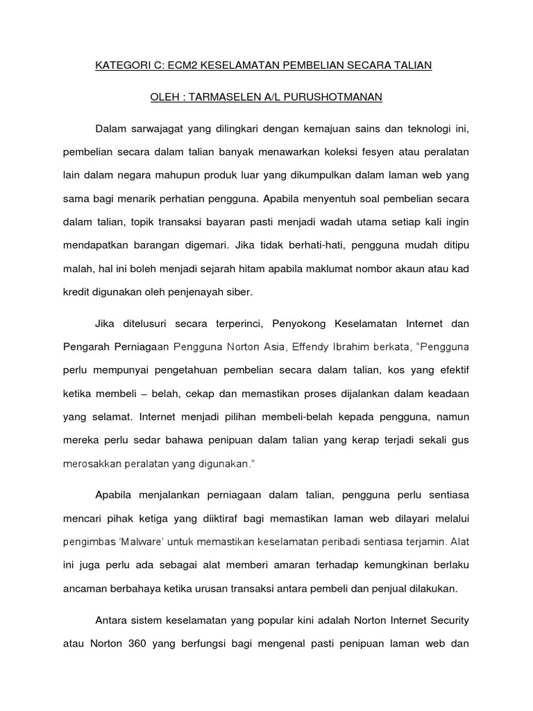 Perniagaan dalam talian semakin mendapat tempat di hati peniaga dan pembeli sekarang ni. Sekiranya ya berikut dikongsikan contoh karangan bahasa melayu spm yang merangkumi pelbagai tema dan tajuk untuk rujukan semua. Karangan perniagaan atas talian.