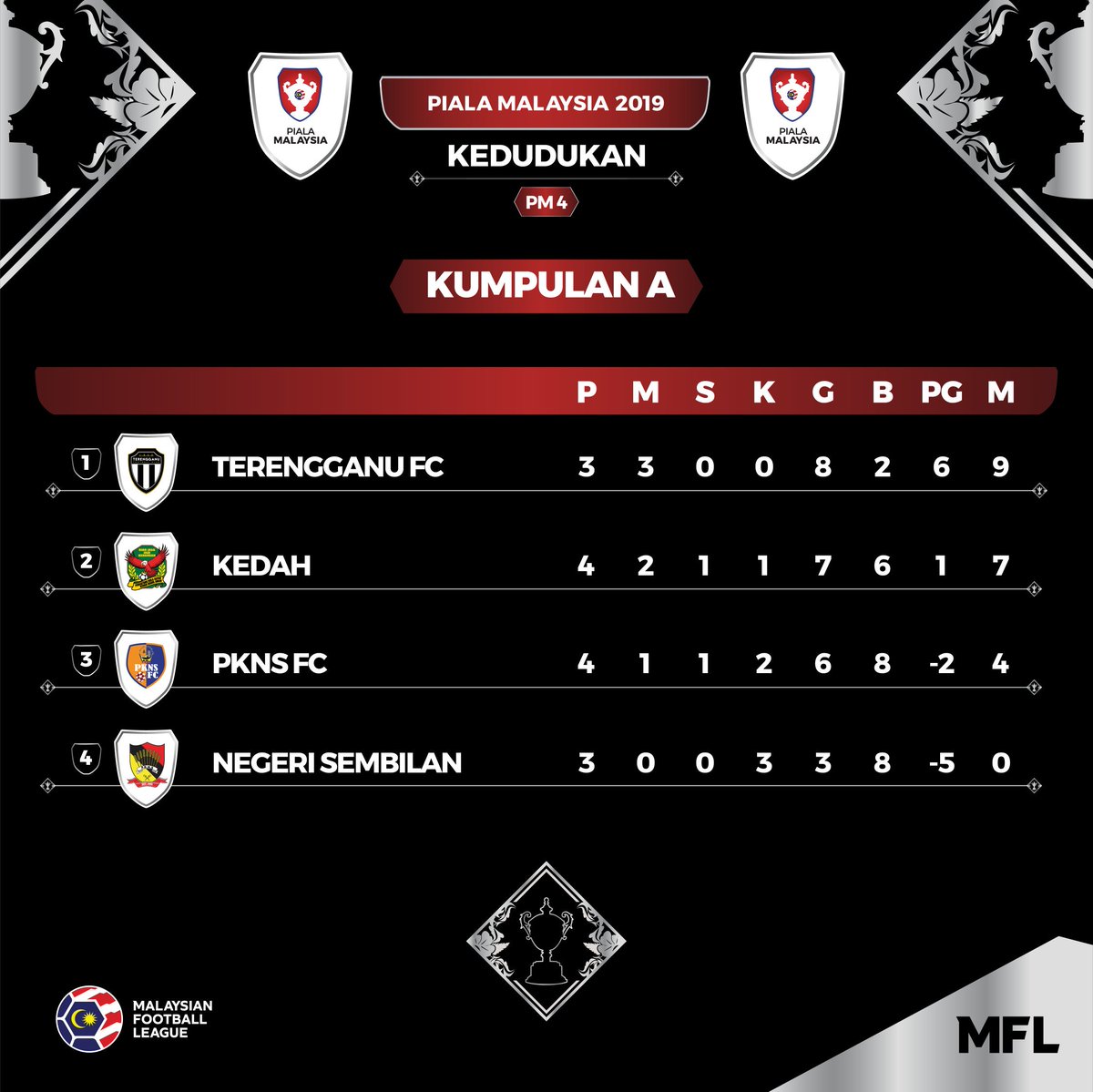 Kedudukan piala malaysia 2019. Di sini anda akan menjumpai penjaring gol kad kuning merah barisan pemain dan gantian pemain dalam butiran perlawanan. Ikuti piala malaysia 2019 untuk skor secara langsung keputusan akhir jadual dan kedudukan. Piala malaysia 2020 jadual keputusan terkini dan kedudukan carta twitter facebook whatsapp telegram menurut sumber kejohanan bola sepak piala malaysia 2020 juga edisi ke 94 akan membuka tirai saingan bermula pada 17 18 oktober 2020 dan kemuncak saingan iaitu perlawanan akhir final dijadual berlangsung pada 7 november 2020.