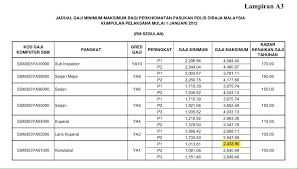 Contoh penetapan gaji permulaan kenaikan pangkat kenaikan gred dg44 ke dg48. Kenaikan gaji tahunan rm115 00 selepas maksimum campur kadar tetap 3 gaji maksimum warna kuning tidak ditunjukkan tpg tarikh pergerakan gaji ikut masing masing iaitu 1 jan 1 april 1 julai atau 1 oktober 3 maksimum dikemaskini seperti pada 01 01 2015. Tarikh pergerakan gaji tpg.