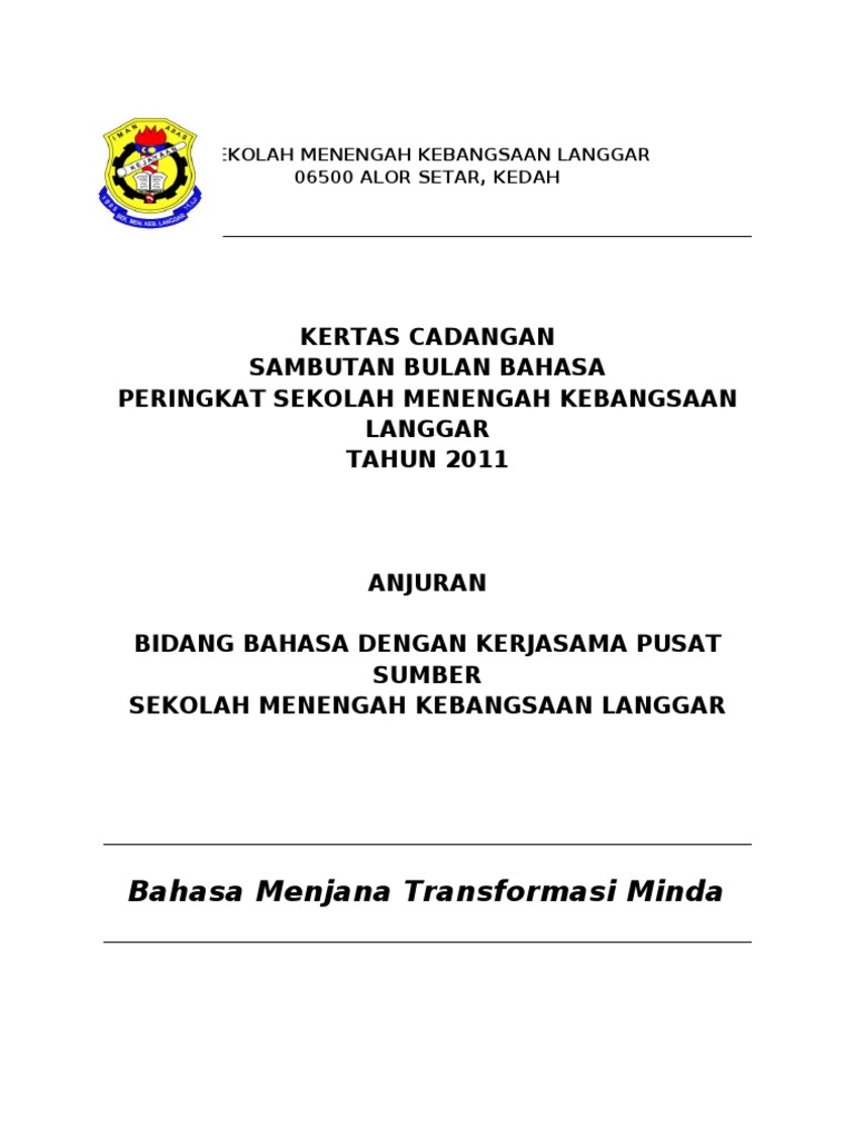 Kertas Kerja Bulan Bahasa Kebangsaan