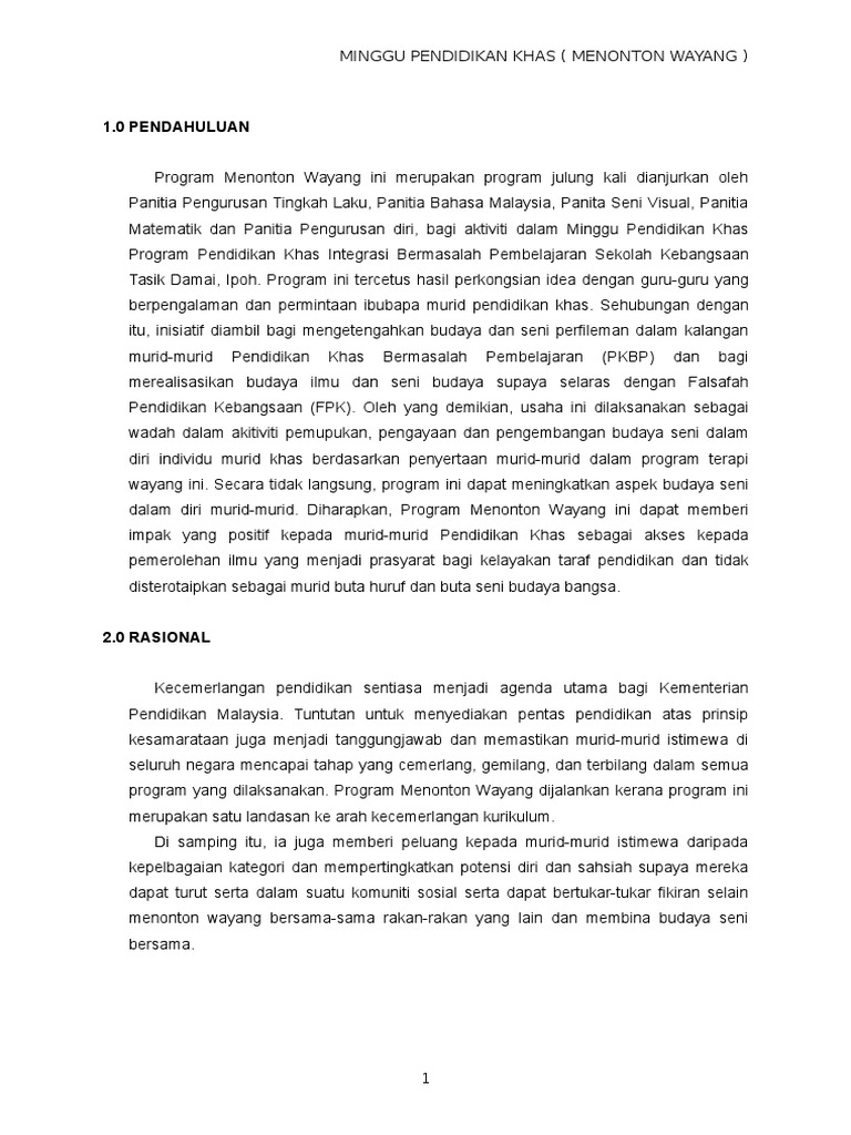 Kertas Kerja Menonton Wayang Pendidikan Khas