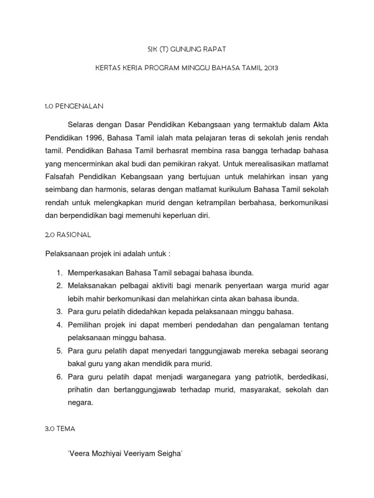 177365832 Kertas Kerja Untuk Program Bahasa Tamil Docx Sjk T Tanjong Rambutan Perak Kertas Kerja Program Minggu Bahasa Tamil Tahun 2013 1 0 Course Hero