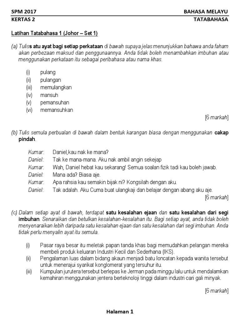 6 Koleksi Soalan Tatabahasa Percubaan Spm 2017 Se Malaysia 1