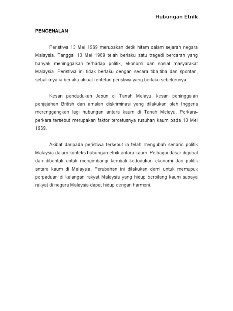 Kepentingan Hubungan Etnik Kesan Peristiwa 13 Mei 1969