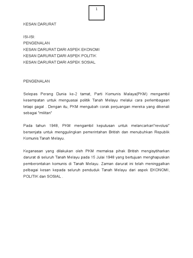 Kesan Kesan Undang Undang Darurat 1948 Sejarah Stpm Penggal 3
