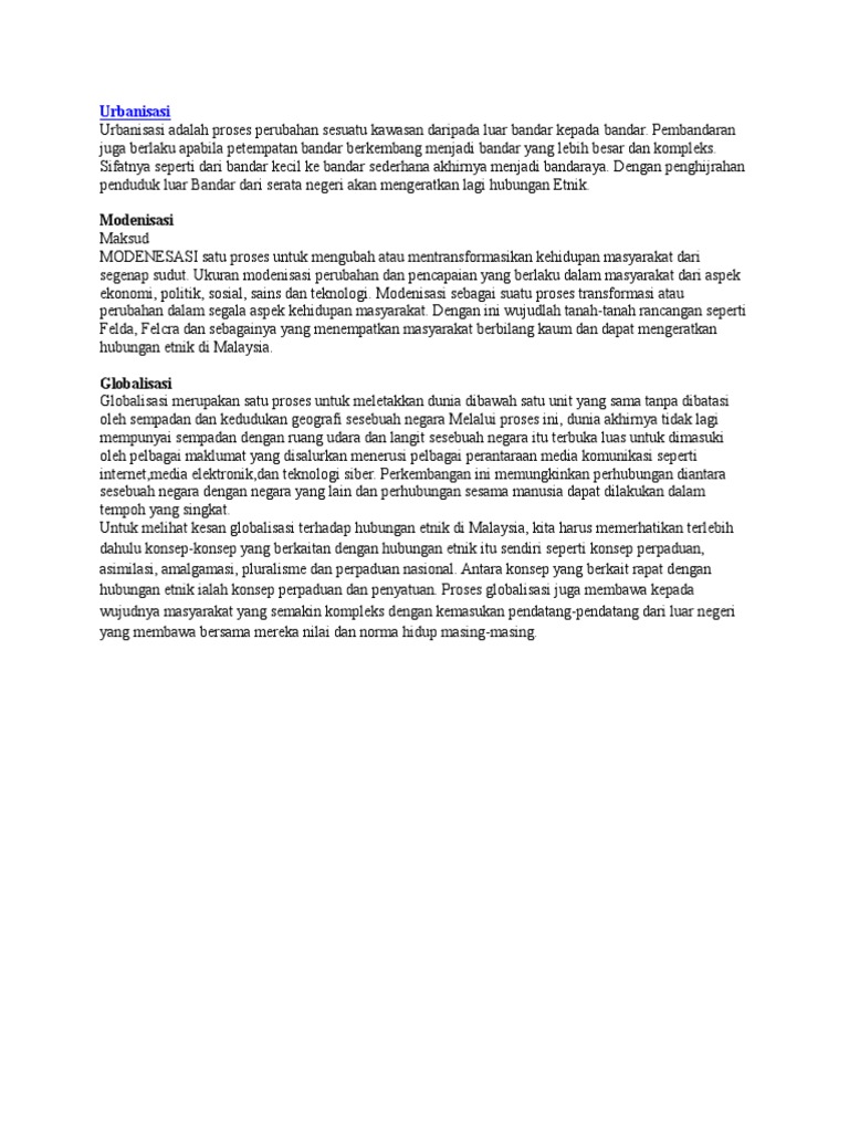 Urbanisasi Modenisasi Dan Globalisasi Docx